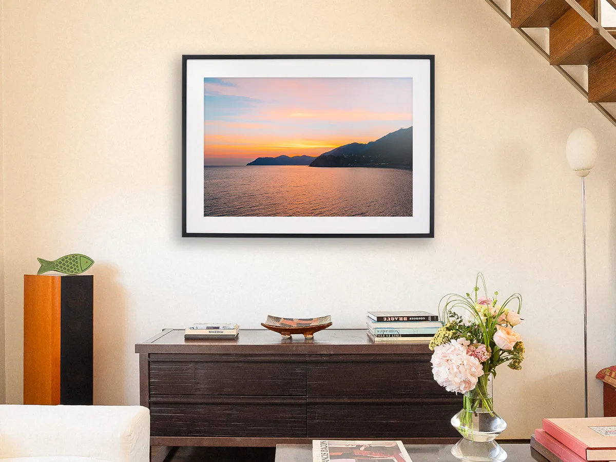 Diseñada para realzar tus imágenes con sutileza, la impresión con paspartú destaca por su elegancia. Impresa en papel fotográfico y protegida por su marco, tu fotografía se realza de forma duradera